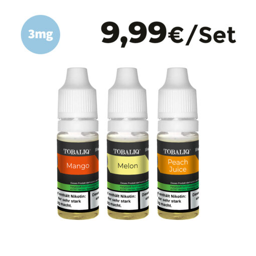 3er E-Liquid Set – 3mg Nikotin: Mango, Melon, Peach Juice