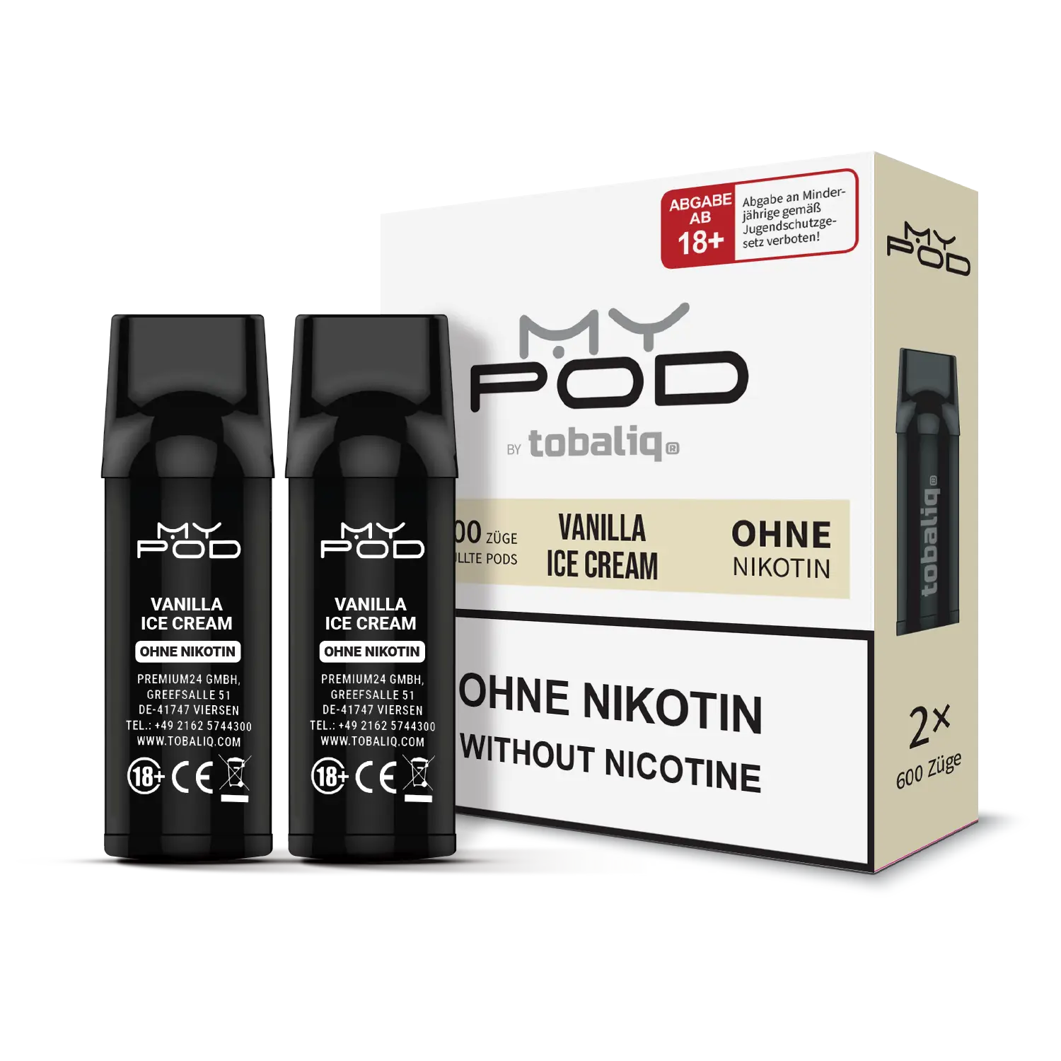 MyPod Vanilla Ice Cream von TOBALIQ verwöhnt deine Sinne mit dem cremig-süßen Geschmack von zarter Vanilleeiscreme, verfeinert durch eine erfrischende, kühle Note. Dieses sanfte und zugleich erfrischende Aroma bietet ein unverwechselbares Geschmackserlebnis, das die cremige Süße perfekt mit einem eisigen Hauch kombiniert. MyPod Vanilla Ice Cream ist die ideale Wahl für alle, die eine harmonische Mischung aus Süße und Frische genießen möchten. Erlebe jetzt den einzigartigen Vanille-Genuss in den vorgefüllten MyPod-Pods!