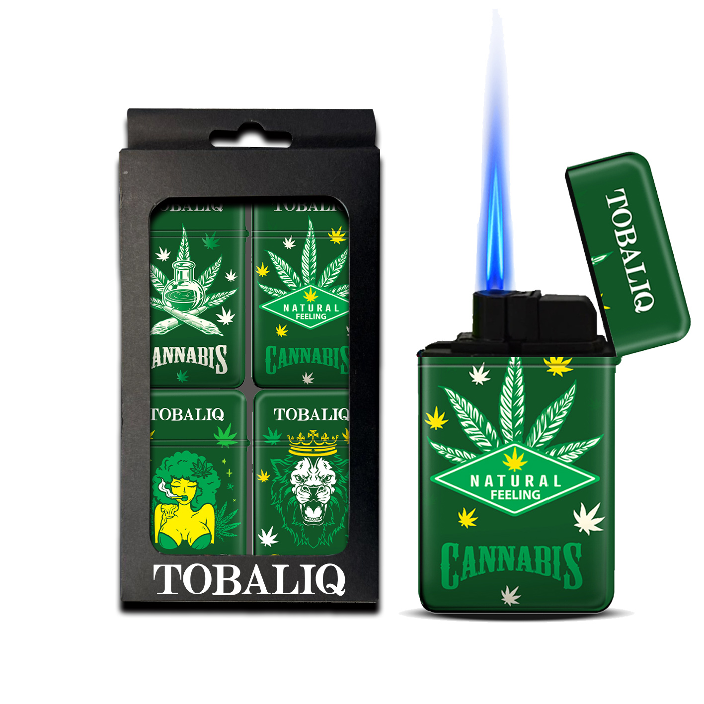 TOBALIQ Jet Flame Feuerzeug King Cannabis – 4er Set
