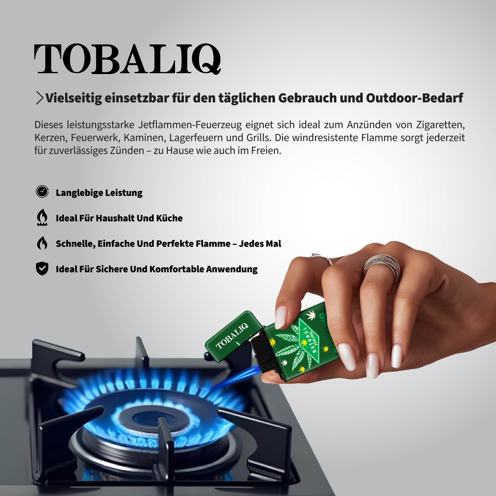 Tobaliq Jet-Flame-Feuerzeug – 4er Set, robustes, nachfüllbares Sturmfeuerzeug mit starker Jet-Flamme, Kindersicherung und exklusiven Designs in edler Sammlerbox.