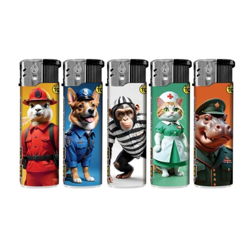 Elektronische nachfüllbare Motivfeuerzeuge von TOBALIQ – 50er-Display mit 5 Designs. Perfekt für Haushalt und Einzelhandel.